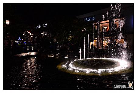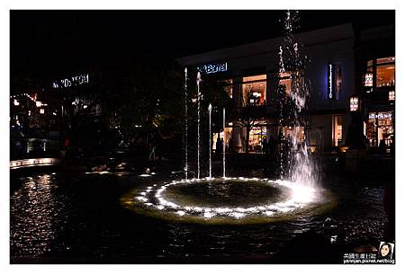到了晚上配合燈光、有音樂及水舞的表演,水池周圍、餐廳外,有很多人在此用餐,